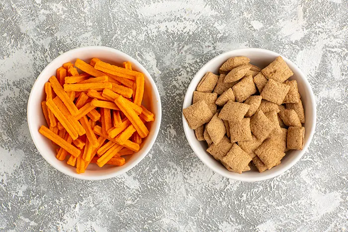• Nunca debes dar snacks: justo antes o después de una comida regular en exceso, ni reemplazar comidas completas con golosinas.